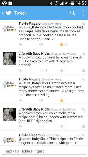 I had a little Twitter chat with lovely Annabel of Tickle Fingers Cookbook about how to incorporate more vegetables into the Toddler’s (and the Husband’s) diet without resorting to hiding them.