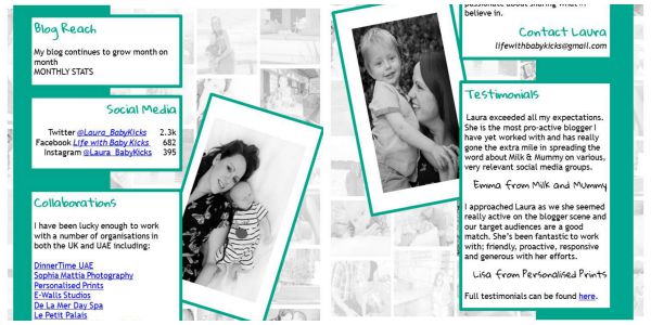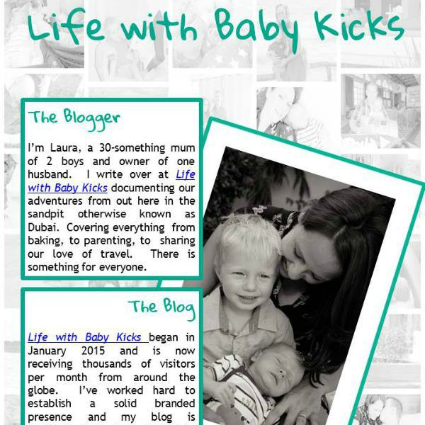 Since then I have had a crazy post with “Dear Mummy, I’m Not Sleeping Because…” as well as rising up into the top 250 in Tots 100. Which has meant a different level in my blogging. It’s gone from me approaching all those I want to work with to being approached by brands. While being approached by Dubai brands is amazing knowing that blogging is becoming a real thing. Being approached by brands in the UK is a real minefield. They work with bloggers. They know what they need. They like a media kit.
